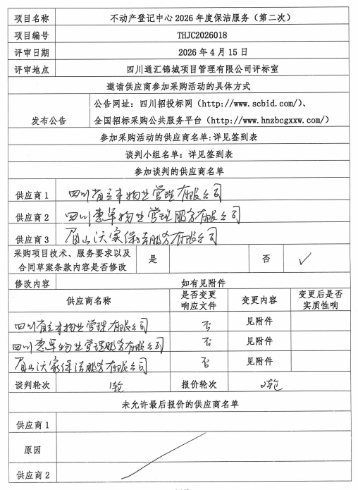 不动产登记中心2026年度保洁服务(第二次)成交公告