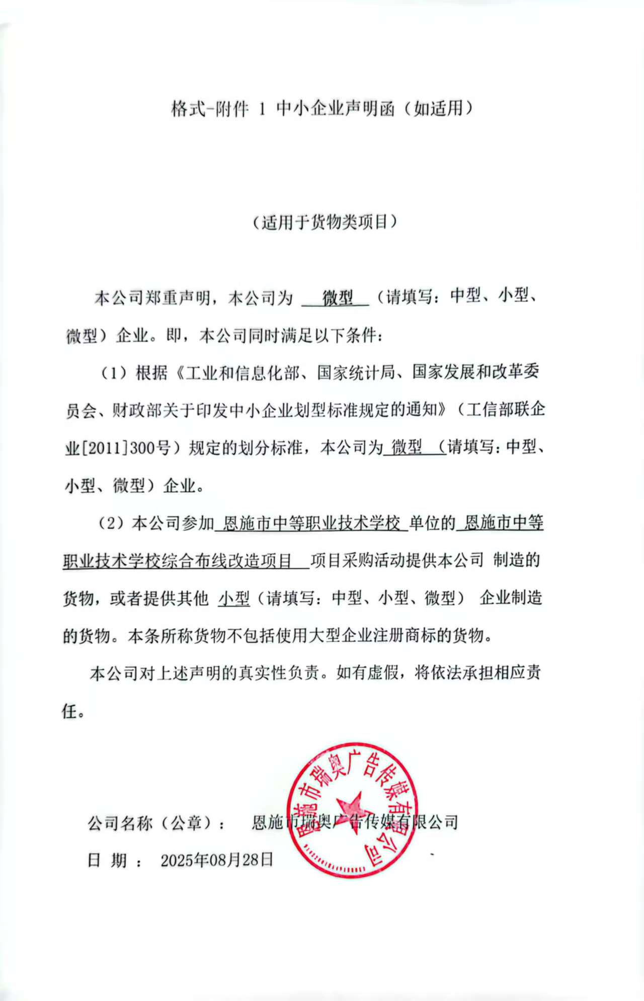 1.1供应商名称:恩施市瑞奥广告传媒有限公司